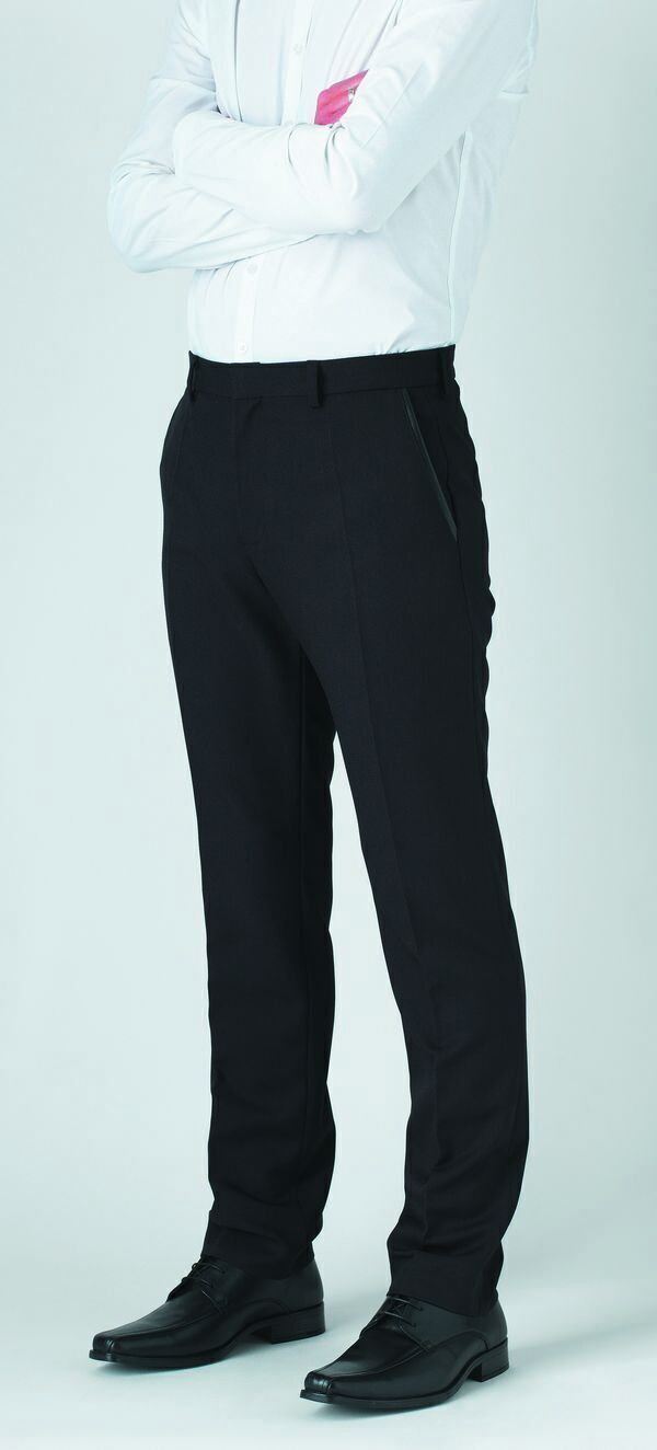 Pantalon de service. Ceinture 5 passants avec fermeture à glissière centrale, bouton cousu et agrafe invisible. 2 poches italiennes finition effet cuir. Pinces dos. 1 poche dos finition effet cuir. Finition bas surfilé. Coupe slim. E.J. : 84 cm