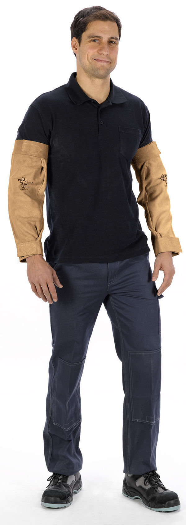 Manchettes en croûte jusqu’au coude. Réglage par velcro sur les deux extrémités. Cuir de sélection extra. Épaisseur : 1,2-1,4 mm. Longueur : 39 cm.