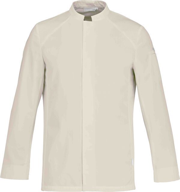 Veste homme bi-matières à col officier plongeant. Fermeture milieu devant par boutons-pression cachés. Manches longues. Poche passepoilée sur manche gauche. Fentes côtés. Empiècements en maille piquée aux épaules et aux côtés.
