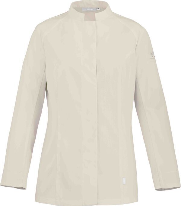 Veste femme bi-matières à col officier plongeant. Fermeture milieu devant par boutons-pression cachés. Manches longues. Poche passepoilée sur manche gauche. Fentes côtés. Empiècements en maille piquée aux épaules et aux côtés.
