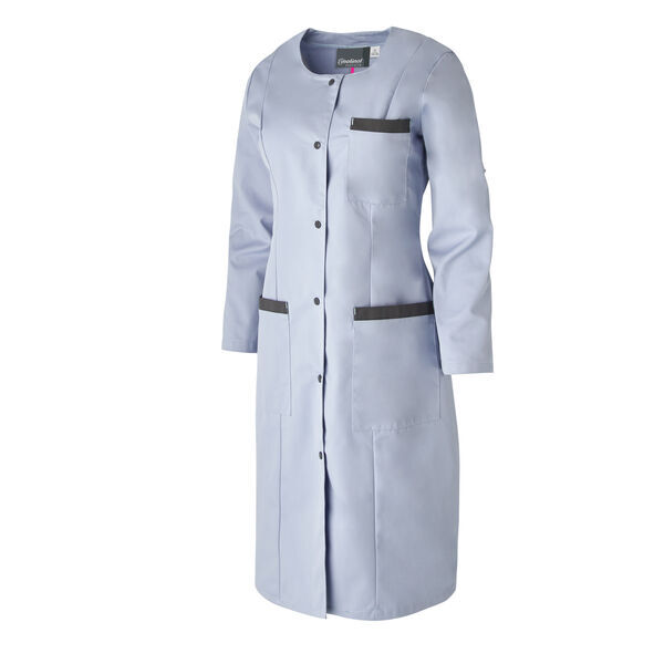 03MOLCAROLINEMT Blouse femme. Encolure ronde, Fermeture milieu par 6 pressions apparentes, Manches transformables, Fentes côtés, 1 poche poitrine sur devant gauche avec parement contrasté, 2 poches basses avec parements contrastés, Découpes bretelles devant et pinces dos. Longueur 105cm